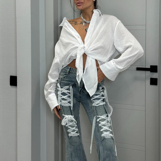 Damen Flared Jeans mit raffiniertem Schnür-Design Stalluxe