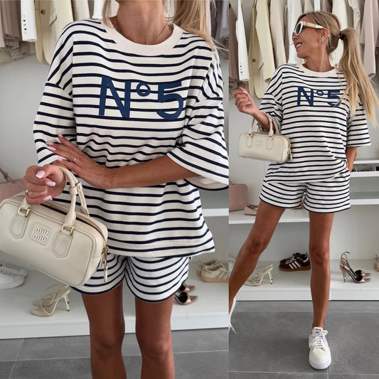 Damen gestreiftes Shorts-Set mit modischem Oversize-Schnitt Stalluxe