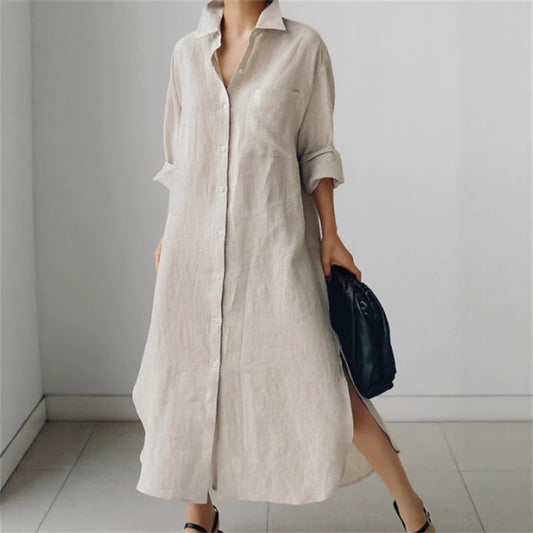 Damen Langarmhemdkleid mit taillierbarem Gürtel und Knopfverschluss Stalluxe