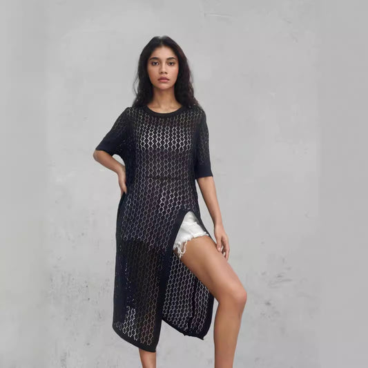 Damen Langer Strick-Kimono mit offenem Design und atmungsaktiver Maschenstruktur Stalluxe