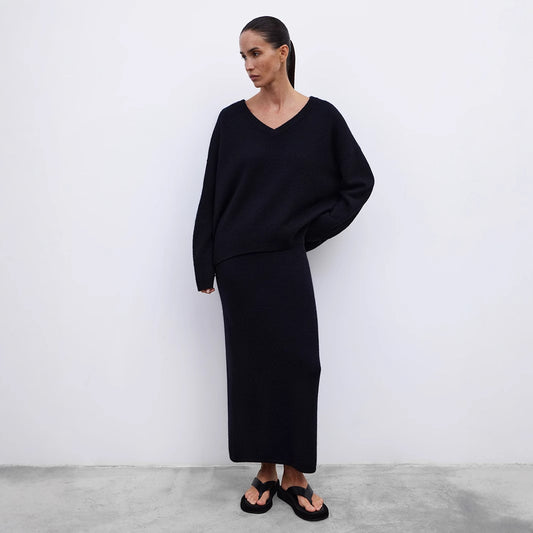 Damen Langer Jersey-Rock mit verstellbarem Bund und eleganter Silhouette Stalluxe