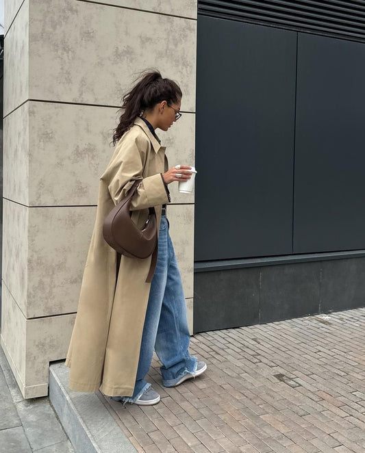 Damen Lange und elegante Trenchcoat-Jacke aus wasserabweisendem Material Stalluxe
