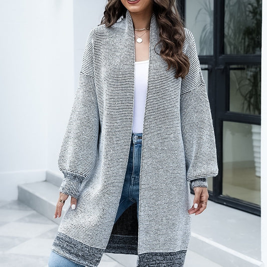 Damen Langer Strickcardigan mit modischem Design und breiten Ärmeln Stalluxe
