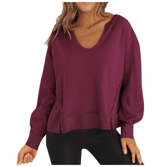 Damen Lässiger Pullover mit V-Ausschnitt und seitlichen Schlitzen Stalluxe