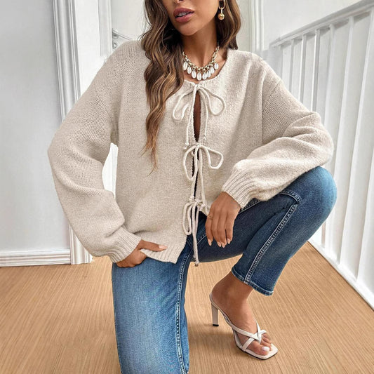 Damen lässiger Strickcardigan mit Bindebändern Stalluxe