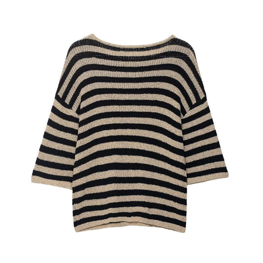 Damen lässiger Strickpullover mit breiten Querstreifen Stalluxe