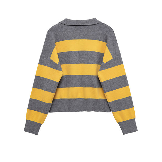 Damen lässiger Strickpullover mit stylisierten Streifen und Polokragen Stalluxe