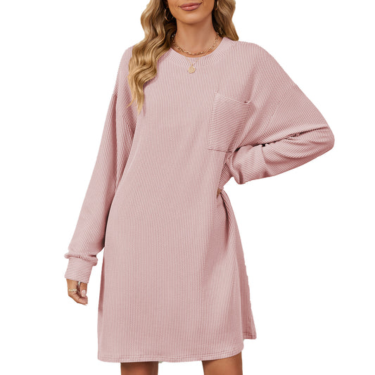 Damen lässiges Langarm Kleid mit praktischen Taschen und modernem Strukturdesign Stalluxe