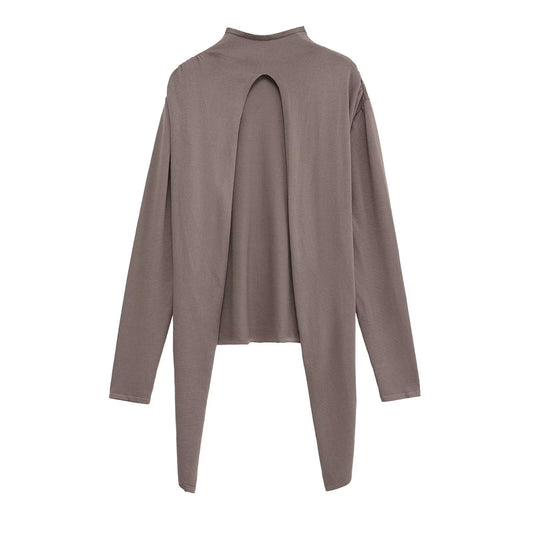 Damen Lässiges Langarmoberteil mit asymmetrischem Ausschnitt und transparenten Details Stalluxe