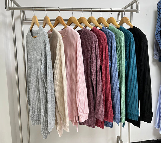 Damen lässiges Langarmshirt aus samtigem Rippstrick Stalluxe