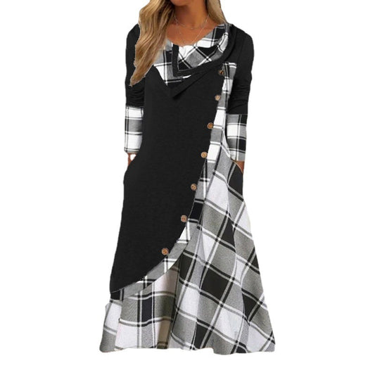 Damen lässiges Maxikleid mit asymmetrischem Schnitt und Karo-Muster Stalluxe