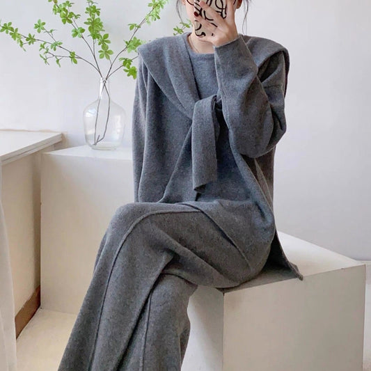 Damen Lässiges Lounge-Set mit weitem Schnitt und bindbarem Taillengürtel Stalluxe