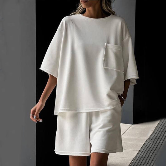 Damen lässiges Lounge-Set aus atmungsaktivem Material mit oversized T-Shirt und Shorts Stalluxe