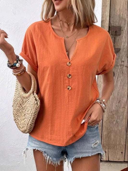 Damen lockeres Kurzarmhemd mit Knopfleiste und Rundhalsausschnitt Stalluxe