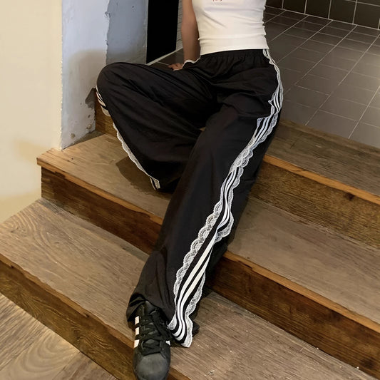 Damen lockere Sporthose mit praktischen Seitentaschen und dekorativen Streifen Stalluxe