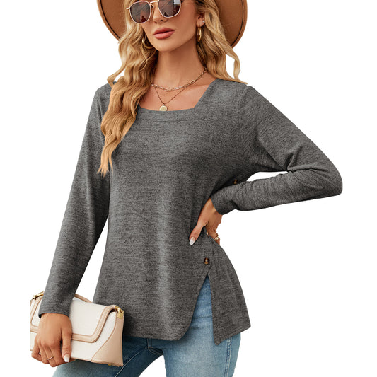 Damen lockerer Langarm-Top mit asymmetrischem Saum Stalluxe