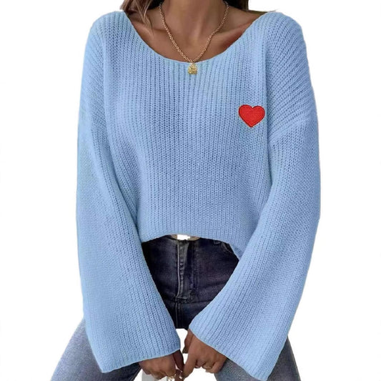 Damen Lockere Strickpullover mit Herzapplikation Stalluxe