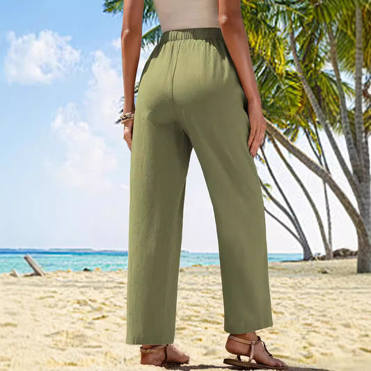 Damen luftige Leinenhose mit seitlichen Taschen und elastischem Bund Stalluxe