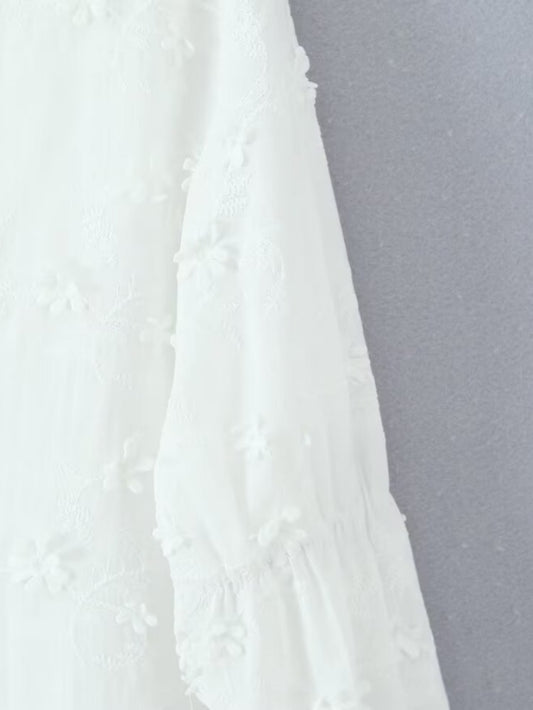 Damen luftiges Tunika-Kleid mit floralen Stickereien und Rüschensaum Stalluxe