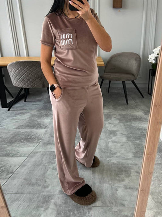 Damen luxuriöser Velours-Hoodie und weite Hose Set Stalluxe