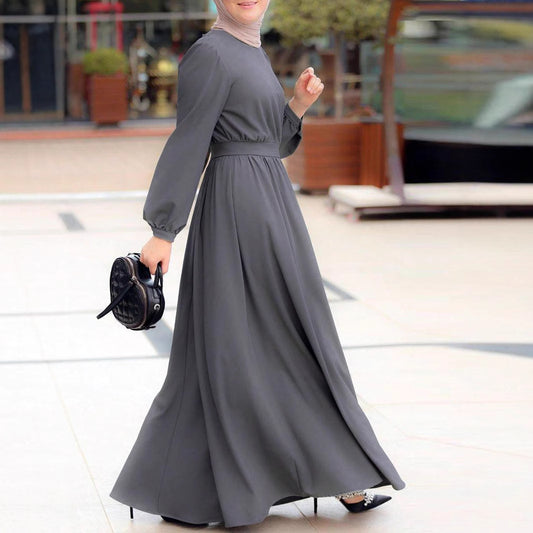 Damen Maxikleid mit elastischem Taillenbund und langen Ärmeln Stalluxe