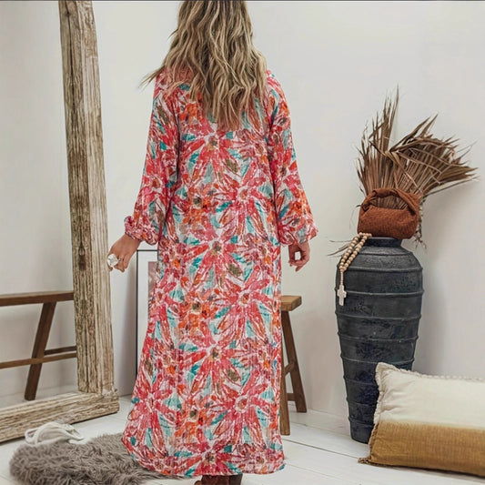 Damen Maxikleid mit buntem Floralprint und leichtem V-Ausschnitt Stalluxe