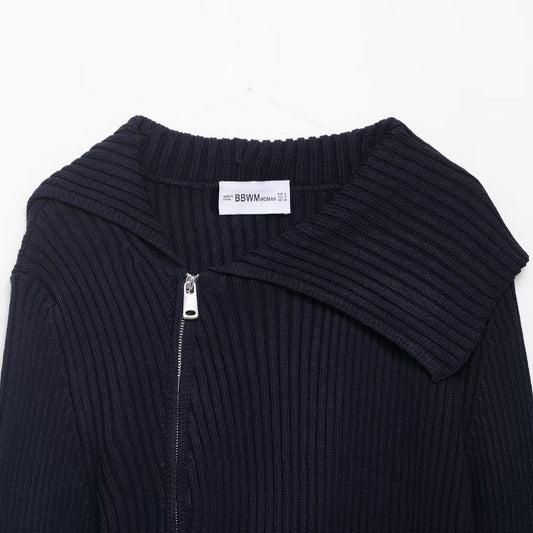 Damen modische Strickjacke mit breitem Kragen und asymmetrischem Reißverschluss Stalluxe