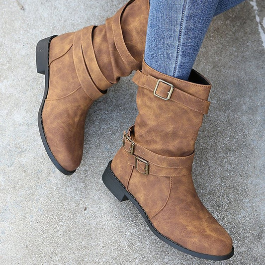 Damen Modische Stiefeletten mit dekorativen Metallakzenten und verstellbarem Riemen Stalluxe