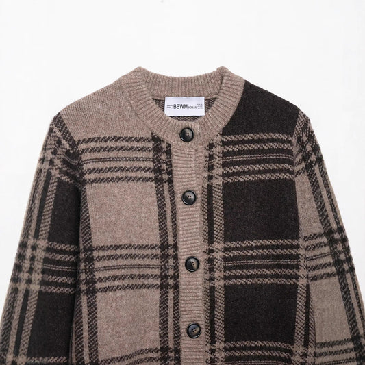 Damen modische Strickjacke mit Karomuster und Knopfdetails Stalluxe