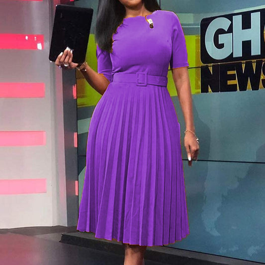 Damen Midi-Kleid mit minimalistischem Schnitt und tailliertem Gürtel Stalluxe