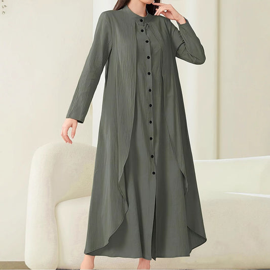 Damen Midi-Kleid mit fließendem Schnitt und Knopfleiste Stalluxe