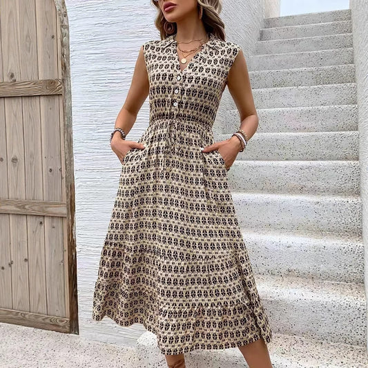 Damen Midikleid mit Knopfdetails und elastischem Taillenbund Stalluxe