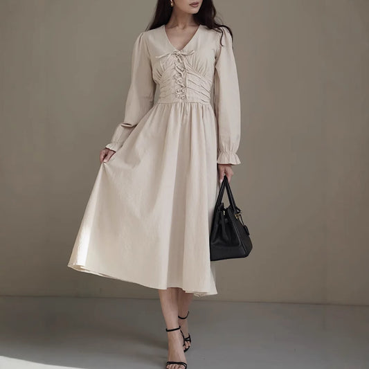 Damen Midikleid mit eleganten Schleifenärmeln und schwingendem Rock Stalluxe