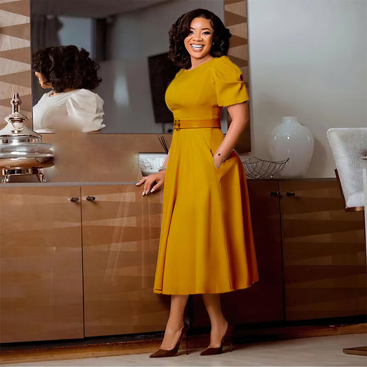 Damen Midikleid mit Puffärmeln und tailliertem Gürtel Stalluxe