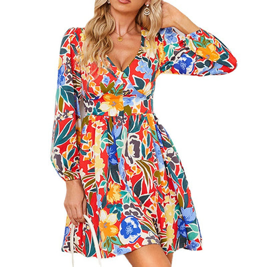 Damen Minikleid mit floralem Druck und voluminösen Ärmeln Stalluxe