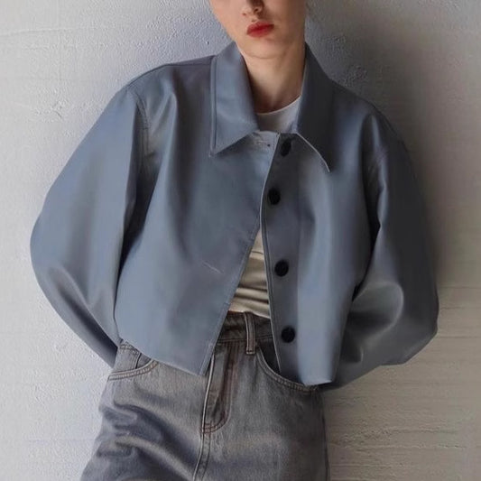 Damen modische cropped Bikerjacke mit doppeltem Knopfverschluss und elegantem Revers Stalluxe