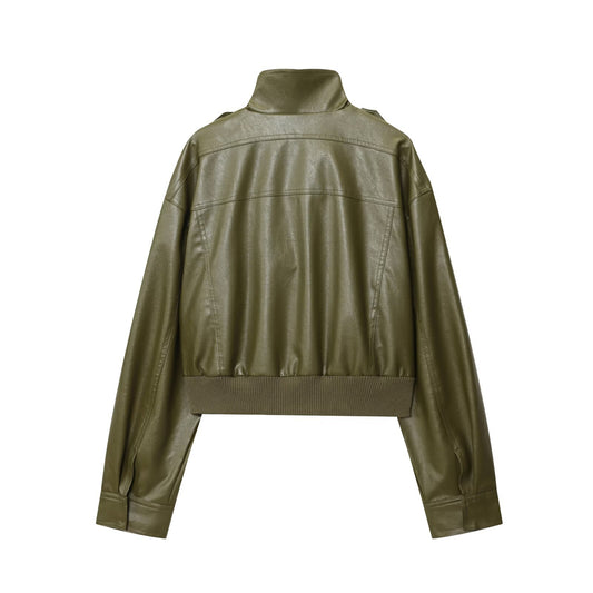 Damen modische cropped Bikerjacke mit Schulterklappen und großen Taschen Stalluxe