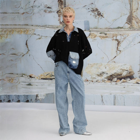 Damen Urbaner Oversized Pullover mit Denim-Details Stalluxe