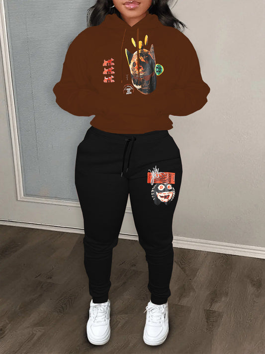 Damen Urbanes Hoodie und Jogginghose Set mit künstlerischem Druck Stalluxe