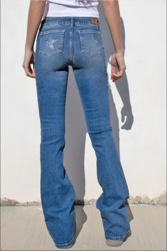 Damen Bootcut-Jeans mit glitzernden Applikationen und fransigen Abschlüssen Stalluxe
