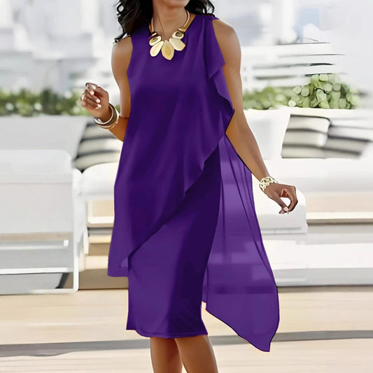 Damen asymmetrisches Chiffonkleid mit fließendem Schnitt Stalluxe