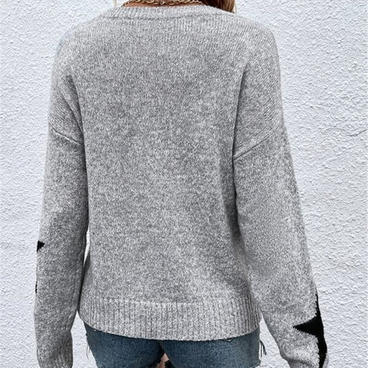 Damen Strickpullover mit auffälligem Sternenmotiv und Rundhalsausschnitt Stalluxe
