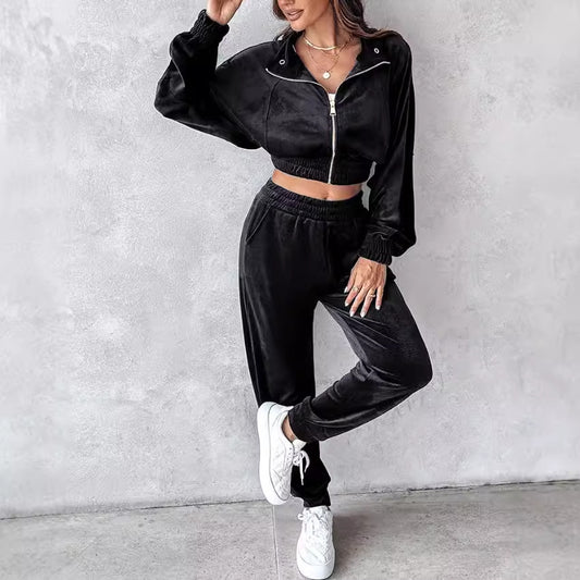 Damen Velours Sportanzug mit cropped Jacke und elastischem Bund Stalluxe