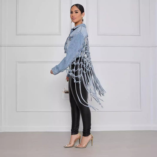 Damen Denimjacke mit einzigartigem Knoten-Detail und lässigem Schnitt Stalluxe
