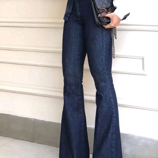 Damen elegante Bootcut-Jeans mit hohem Bund und Gürtel Stalluxe