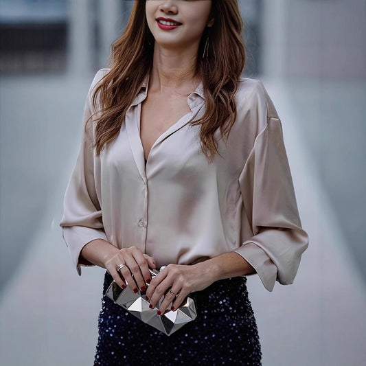 Damen elegante Seidenbluse mit minimalistischen Knopfdetails Stalluxe