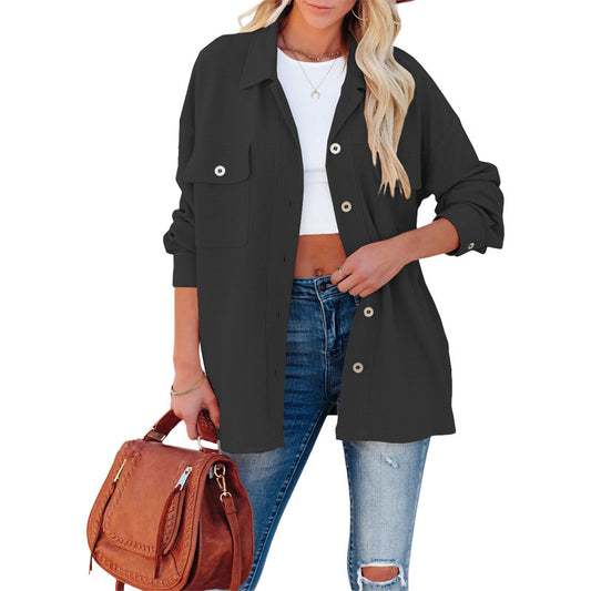 Damen lässige Langarmbluse mit aufgesetzten Taschen und Knopfleiste Stalluxe