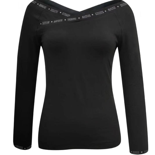 Damen Elegantes Oberteil mit schulterfreiem Design und funkelnden Strassdetails Stalluxe