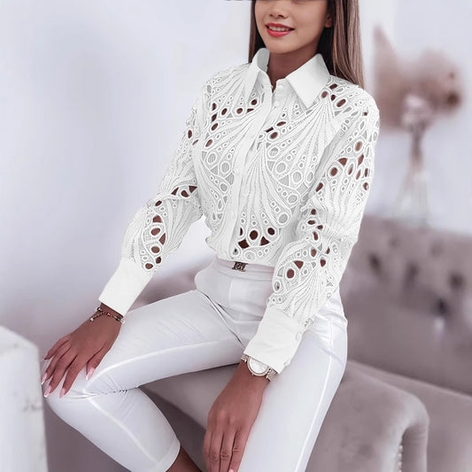 Damen Hemdbluse mit aufwendiger Spitzendetail und Knopfverschluss Stalluxe