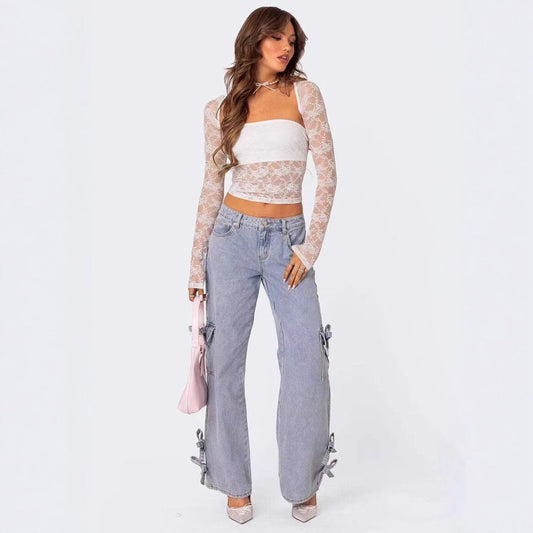 Damen lässige Cargo-Jeans mit stylischem Schleifen-Detail Stalluxe